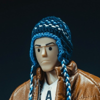配件清单: . 头雕 . 发型 . 窄肩素体 . 手型 X7+1对 . 尼泊尔编织冷帽 (蓝色) . 印花棒球T恤 (白色) . 工装裤 (黑色) . LEATHERCLASSIC DOWN JACKET 羊皮羽绒外套(棕色) . 裤链钱包 (棕色) . 袜子(白色) . cons1970s反绒高帮