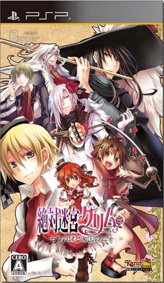 PSP版《绝对迷宫格林童话:七把钥匙与乐园的少女》(Zettai Meikyuu Grimm: Nanatsu no Kagi to Rakuen no Otome)以大家所熟知的《格林童话》故事为背景,改编成的一款女性向恋爱冒险游戏。其世界观比较独特,有点类似于《王国之心》(Kingdom Hearts)的童话世界。